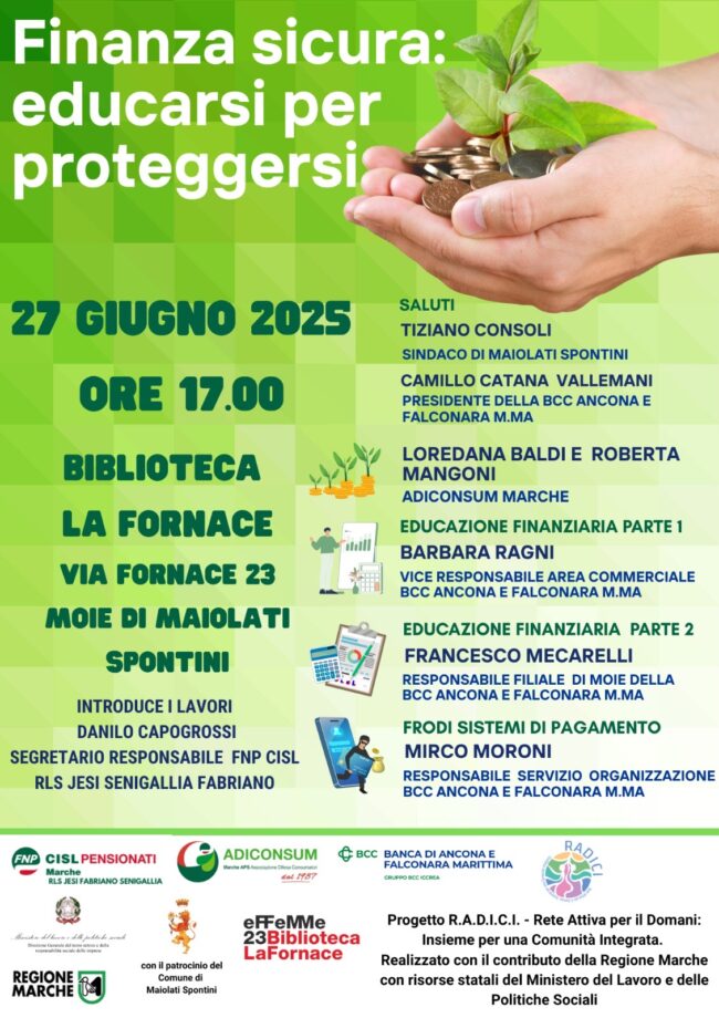 Vuoi approfondire il tema dell’EDUCAZIONE FINANZIARIA? Adiconsum Marche ti aspetta venerdì 27 giugno alla “Biblioteca La Fornace” di Moie per parlare di questa importante tematica sempre più attuale.