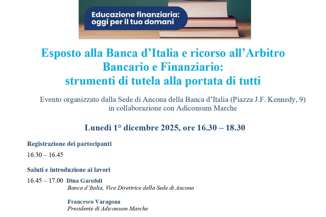 Ti invitiamo a partecipare all’incontro pubblico organizzato dalla Banca d’Italia in collaborazione con Adiconsum Marche dal titolo “Esposto alla Banca d’Italia e ricorso all’Arbitro Bancario Finanziario: strumenti di tutela alla portata di tutti” Sarà un’occasione per confrontarci su temi importanti come le truffe sugli strumenti di pagamento elettronici e sugli strumenti di tutela per…